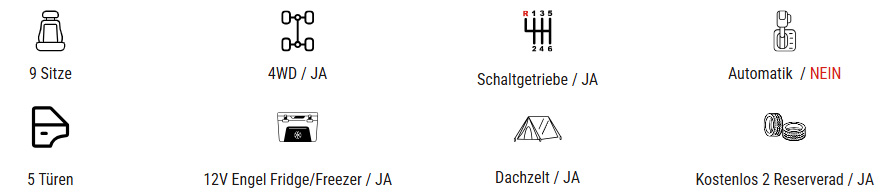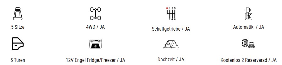 Voll offroadtauglich, mit Allradantrieb, Kühlschrank für kalte Getränke unterwegs und durchdachter Ausstattung für lange Strecken abseits der Straßen. Dein treuer Begleiter für Freiheit, Abenteuer und echte Wildnis.