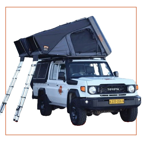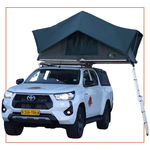 Voll offroadtauglich, ausgestattet mit Kühlbox, und komplettem Camping-Equipment und genügend Stauraum. Das komfortable Dachzelt bietet Platz für 2 Personen, optional mit zwei Dachzelten für bis zu 4 Personen. In wenigen Minuten aufgebaut, schläfst du mitten in der Natur – unabhängig, flexibel und dem Abenteuer ganz nah